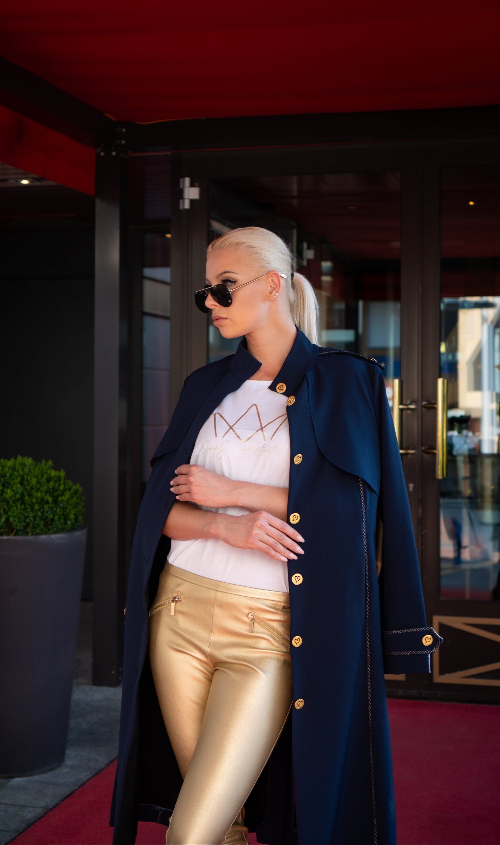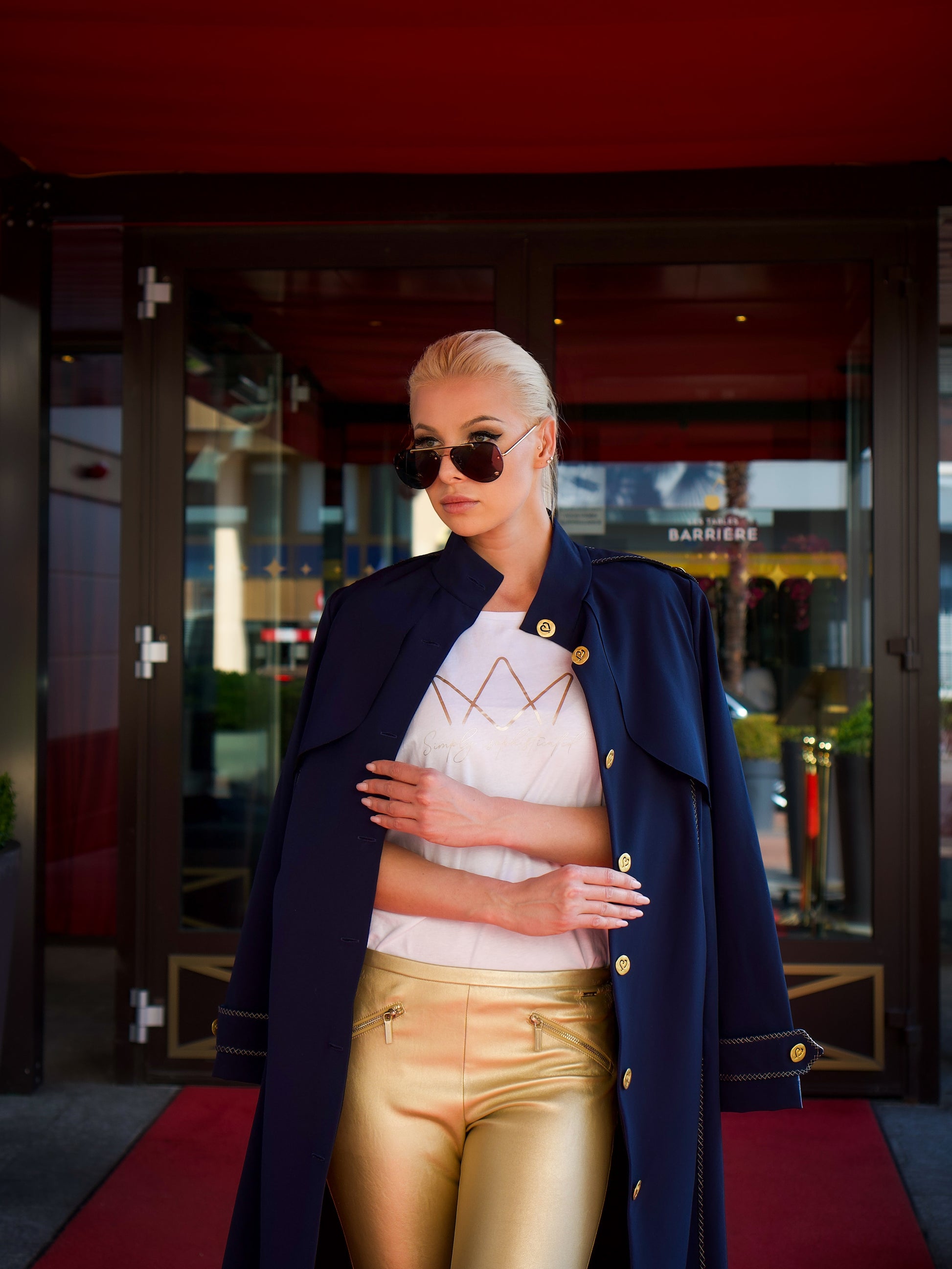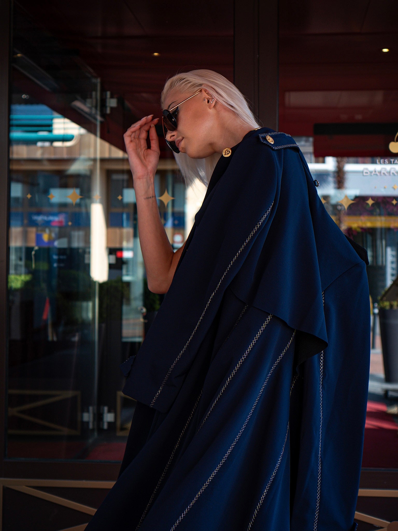 Capospalla realizzato in tessuto tecnico idrorepellente all’esterno, accoppiato internamente a pregiata lana merino per garantire comfort termico e traspirabilità. Taglio classico stile trench con tasche laterali integrate nel design. Chiusura frontale con bottoni in ferro battuto dorati. Rifinito con 1200 cm di ricamo in filo dorato, eseguito artigianalmente.Il tessuto è completamente naturale, fuori produzione, ottenuto attraverso una lavorazione ecoresponsabile con elementi derivati dall’oca e senza impatto ambientale. Una scelta sostenibile che unisce eleganza, funzionalità e rispetto per la natura.